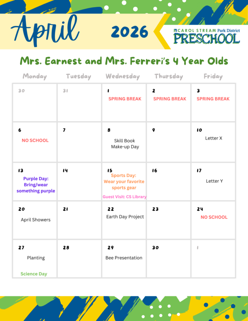 Preschool (4’s) – Mrs. Earnest & Mrs. Ferreri