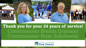 Carol Stream Park District to Honor Retiring Commissioners Brenda Gramann and Brian Sokolowski, will be retiring from their positions as Park Board Commissioners. Their last meeting will[...]