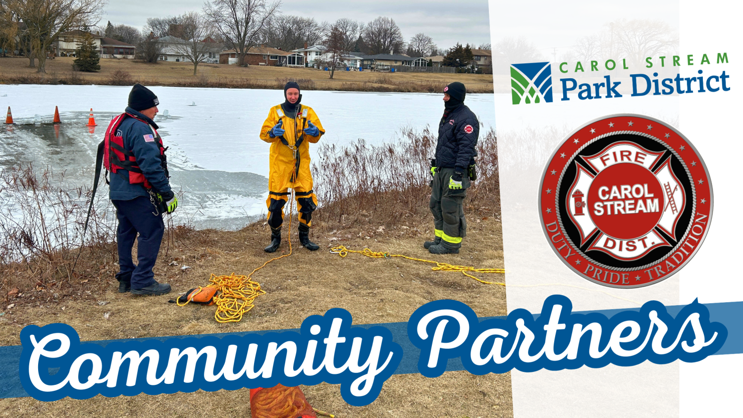 This week, the Carol Stream Fire District conducted ice rescue training at Veterans Lake, sharpening their skills to respond to winter emergencies. The Carol Stream Park District is proud to support first responders by providing a realistic training environment where they can prepare for situations that could save lives.