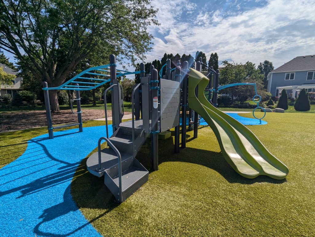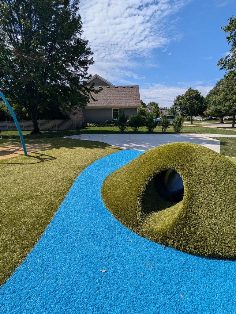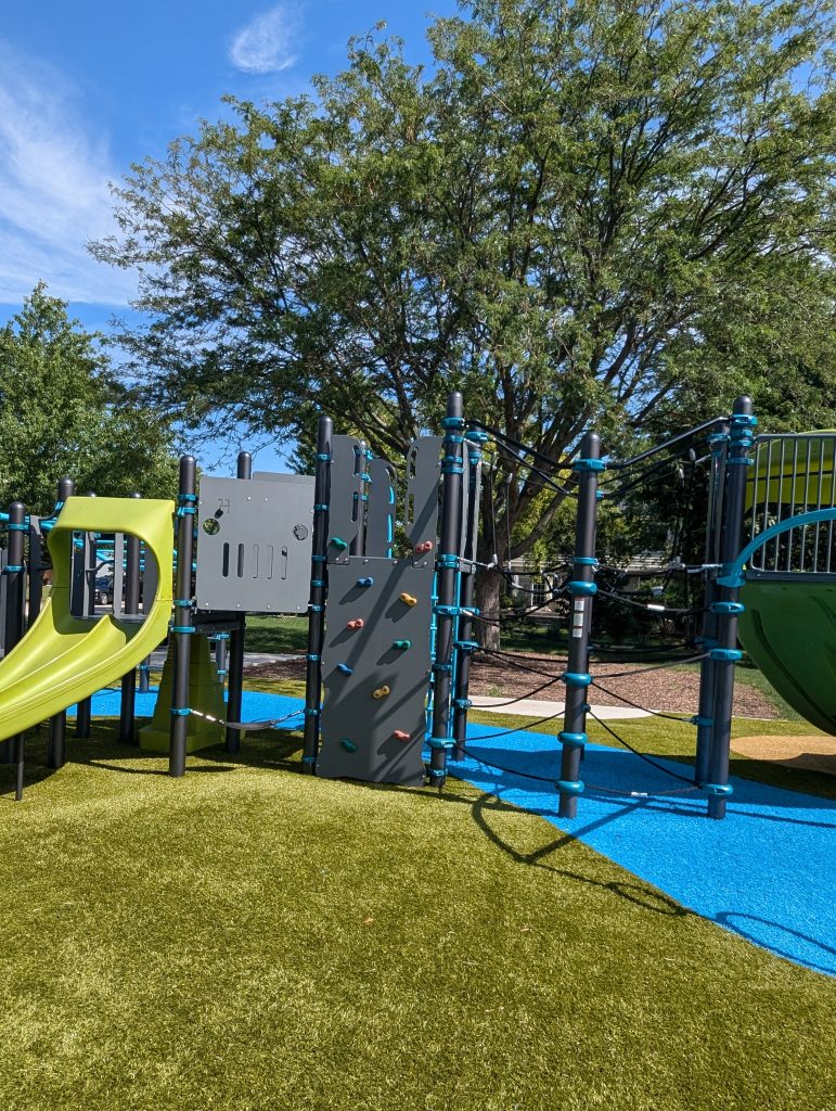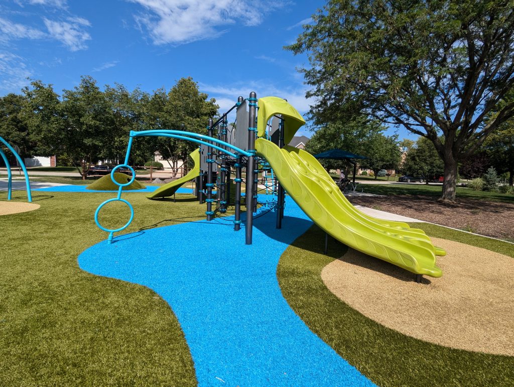 Park on the Green is a lovely park nestled in a beautiful neighborhood bordered by Klein Creek Golf Course. Enter Glen Eagles Drive west off of Pleasant Hill Road and follow the curve as it turns into Bob O’Link Drive. The park is on your right. Playground accommodates ages 2 through 12 years of age.