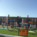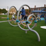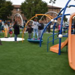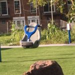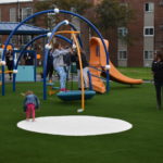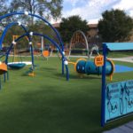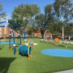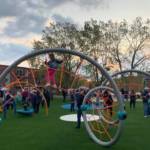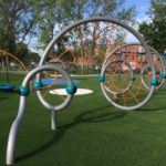 The new park is home to the Twist – an exciting arched ladder apparatus that changes angles in different directions. The Weevos structure is designed to meet the unique physical, cognitive and social needs of young children, sparking their imaginations as they explore. A swing set has two belt swings, one bucket swing and a molded ADA swing. The playground sports a transportation theme with a trike track, street signs and gas and electric panels.