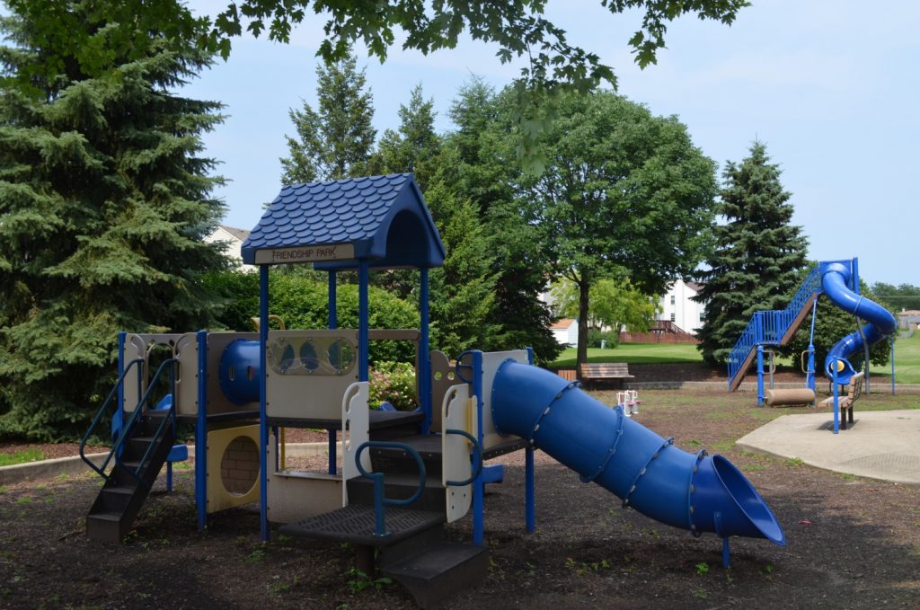 Friendship Park is a half-acre neighborhood park located in central Carol Stream. The park includes a shelter for a small family picnic and a fun playground. Swings are available for tots, youth and ADA-accessibility. The park was established in 1996.