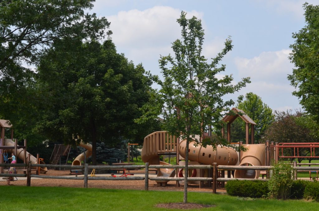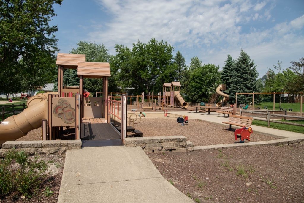 The park was renamed Hampe Park in honor of Norman Hampe, a park district commissioner who served 1971-77, 1985-87 and 1989-94. Hampe initiated the 1994 referendum that funded the park, but unfortunately died two months before it passed. The park used to be called Hartsing Farm because the farmhouse, now referred to as the “historical farmhouse”, was formerly owned by the Hartsing family.