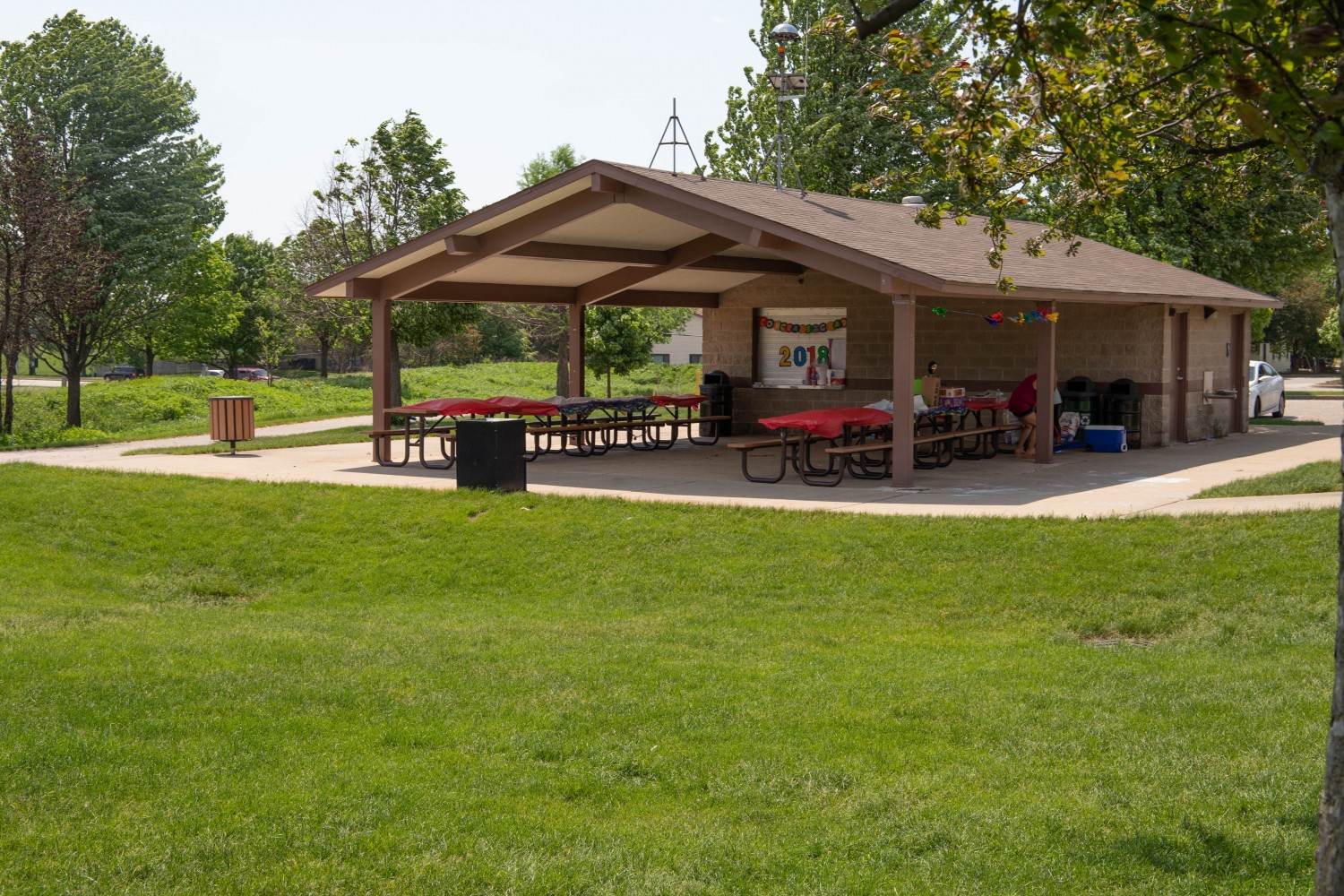 Celebrate birthdays, graduations, reunions or other events in the great outdoors! Picnic shelters are available to reserve April-October. The shelter contains 8 tables and can hold up to 75 people. Visitors have access to the playgrounds, skate park, sports fields and flush toilets (seasonal). There is a parking lot.