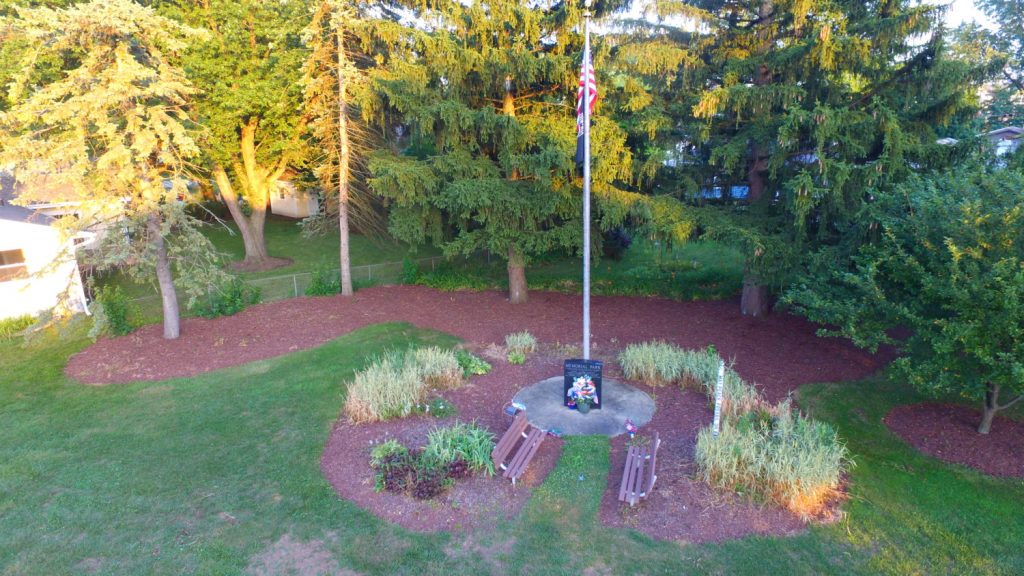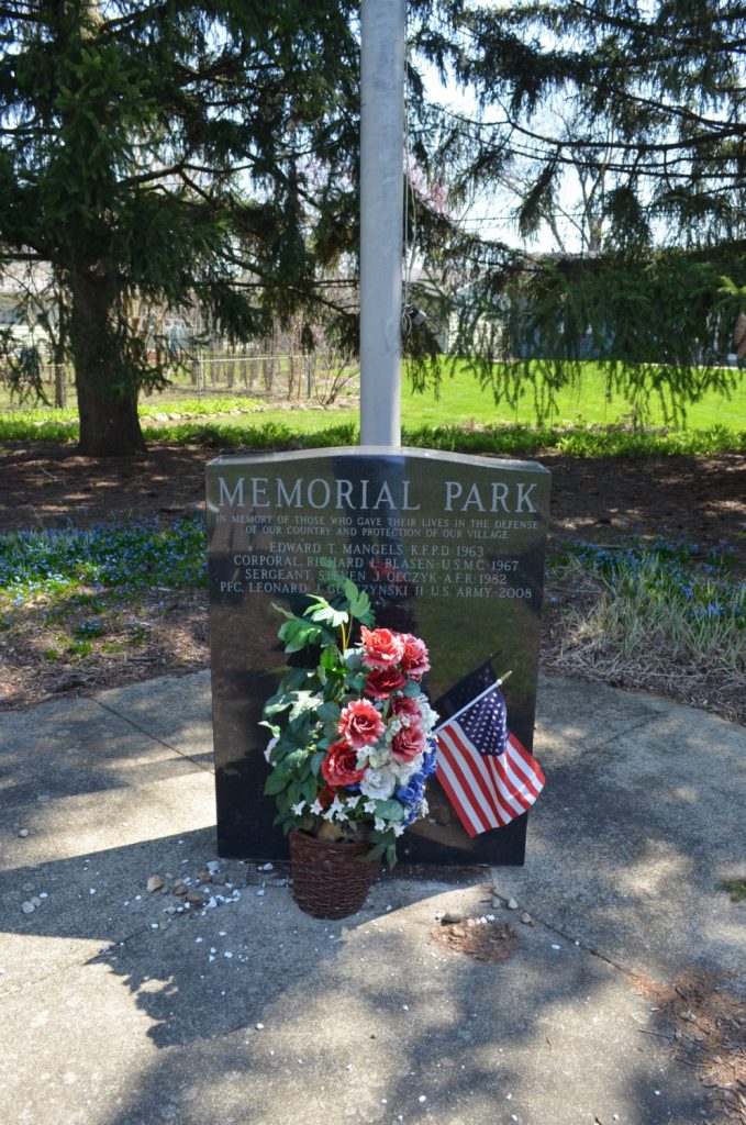 Memorial Park, the first piece of land purchased by the Park District, is located in an older, historical part of Carol Stream. It is uniquely nestled behind Klein Creek that cuts through it. The park was officially dedicated on July 4, 1967 as a memorial to village residents Richard Blasen, who was killed in Vietnam on June 3, 1967 and to volunteer fireman Ed Mangels, who lost his life fighting a fire on April 6, 1963. The park has a small playground with swings (ADA-swing).