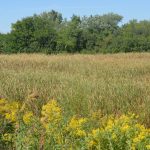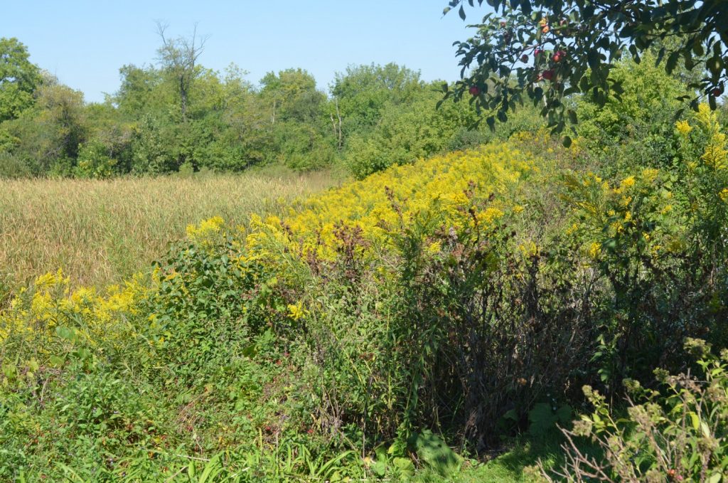 Murray Meadow is a 3.5-acre wetland, not exactly a meadow of greenery to prance and play in as meadows and grasslands are known. However, it is referred to as a meadow because the species of plants in this natural area are considered to be wet prairie plants. As part of a wetland mitigation project, these plants boost floristic diversity. Three of the most dominant plant species are rice cut grass, blue flag iris, and common rush. Other species include hairy white aster, white clover, tall goldenrod, prairie cord grass, lance-fruited oval sedge and rosin weed.