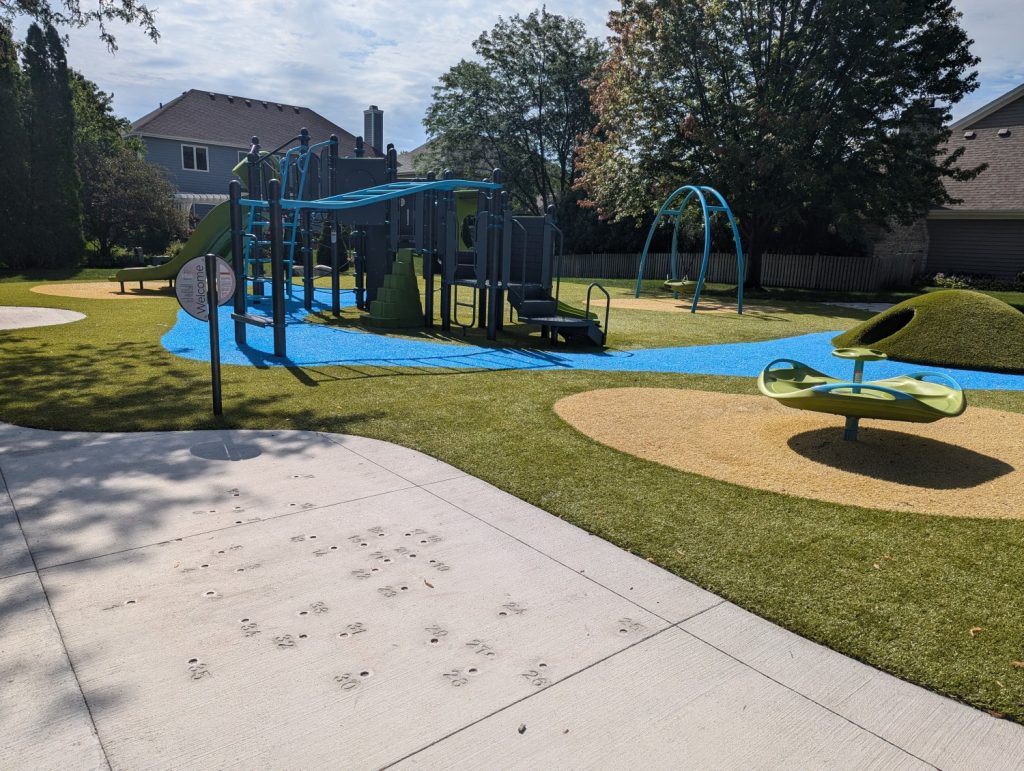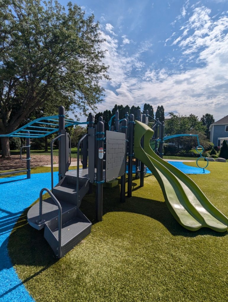 Park on the Green is a lovely park nestled in a beautiful neighborhood bordered by Klein Creek Golf Course. Enter Glen Eagles Drive west off of Pleasant Hill Road and follow the curve as it turns into Bob O’Link Drive. The park is on your right. Playground accommodates ages 2 through 12 years of age.