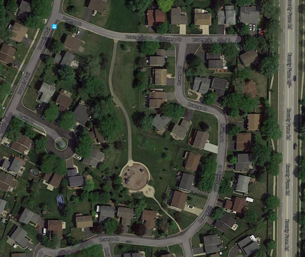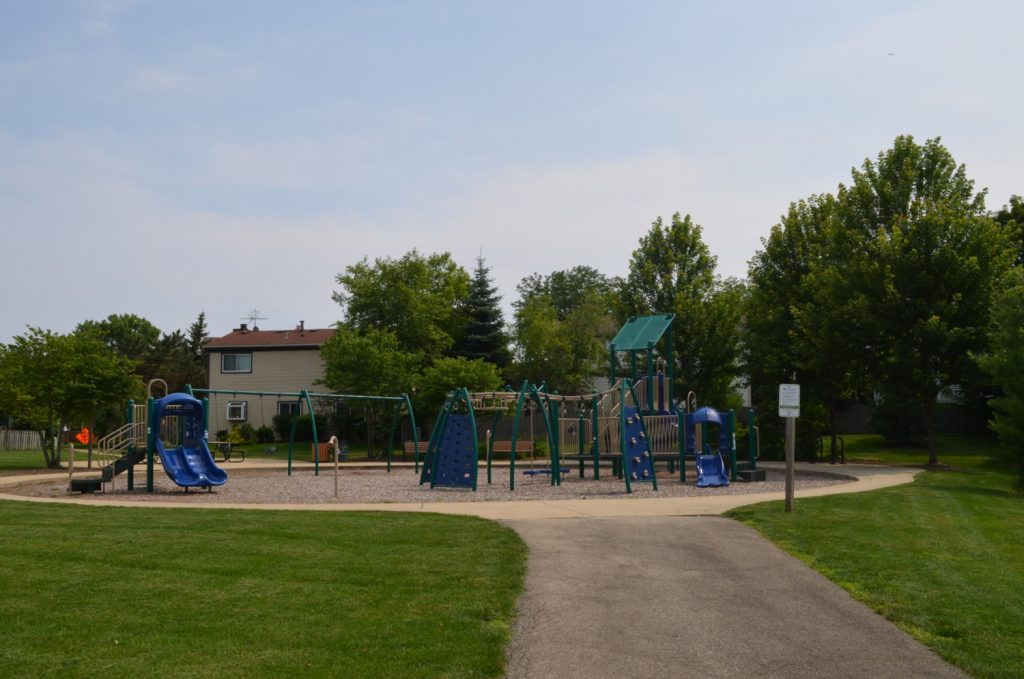 Shining Waters Park is a quiet neighborhood park hidden behind homes of Evergreen Elementary School District 25. It is accessible by path from Oswego Drive, which is accessible from Iroquois Trail or Pawnee Drive. Amenities include swings and playground equipment accommodating kids 2 through 12 years of age.