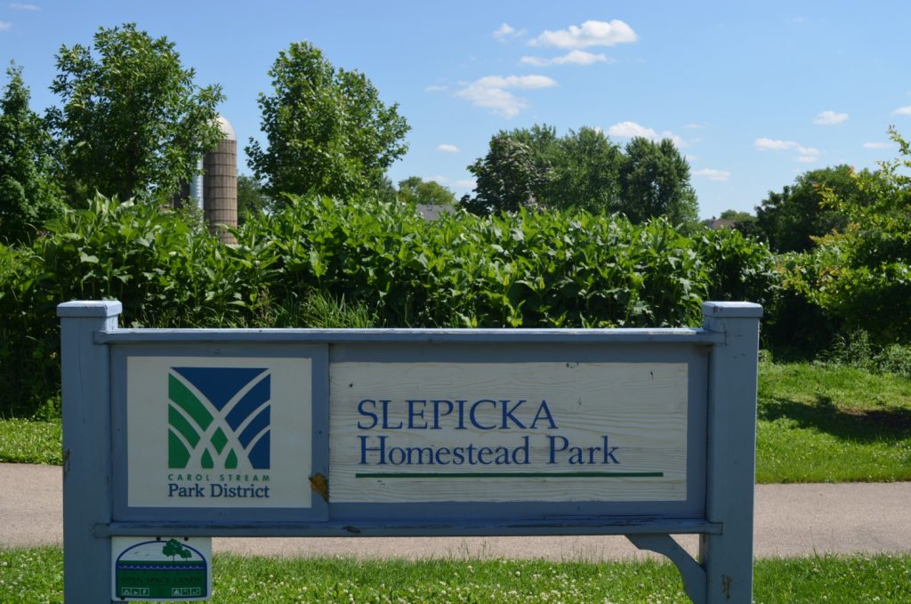 Slepicka Park, named after the family that farmed there since the 1940’s, was opened by the Carol Stream Park District in October 2008. It features beautiful Black Walnut trees and a historic marker — 1940’s concrete silo — which displays farm artifacts.