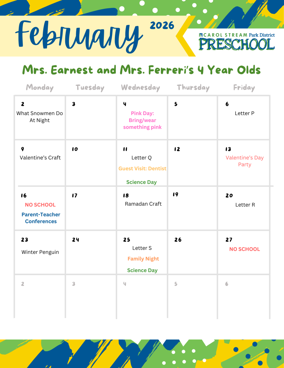 Mrs. Ferreri is starting her 19th year with the Carol Stream Park District Preschool. She has lived in Carol Stream for 34 years and has 4 adult children and 4 grand dogs. She enjoys reading and is a big Chicago sports fan.