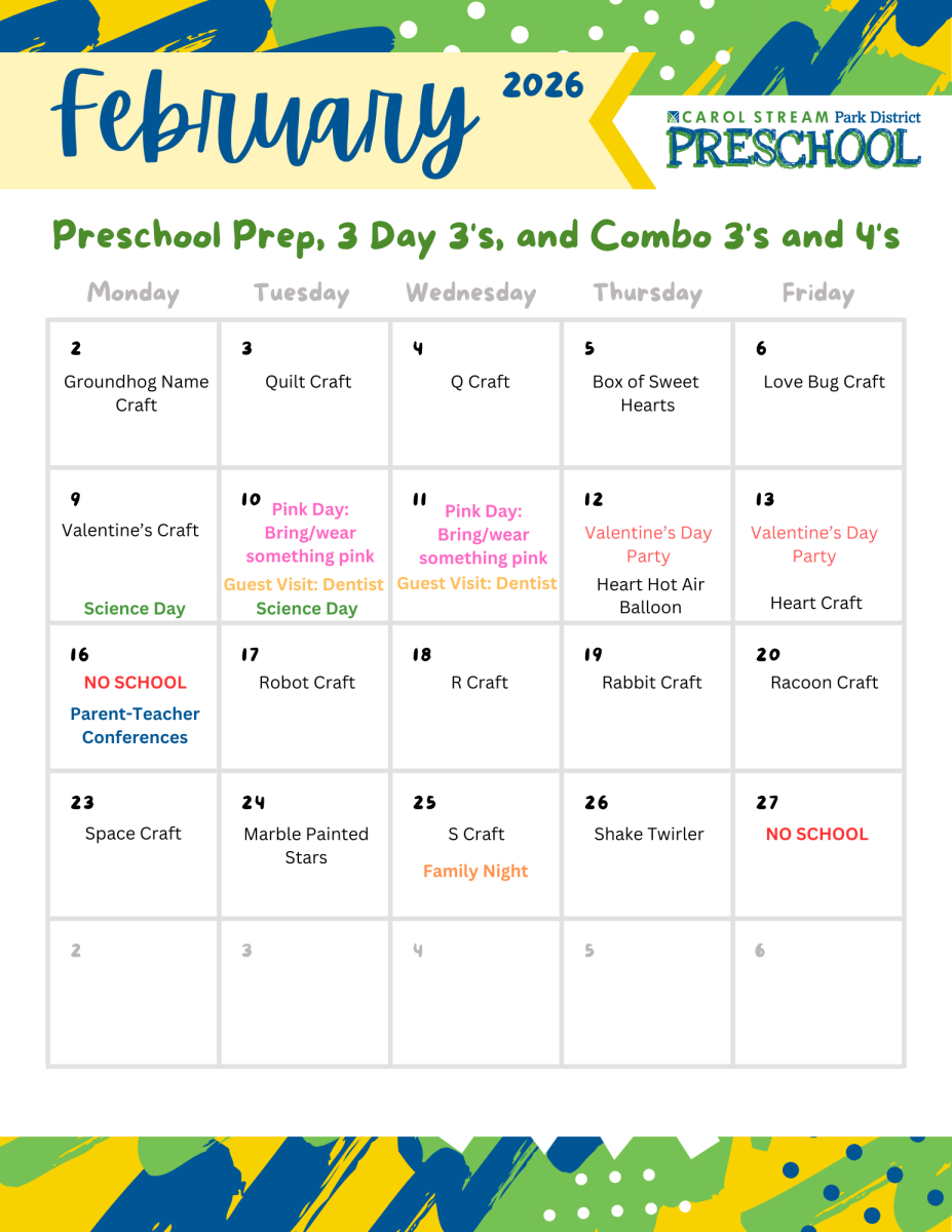 Mrs. Oswald, or Mrs. O, as the students call her, is in her seventh year teaching at the Park District. Even though she moved out of the area several years ago, she grew up in Carol Stream and loves the area. When not teaching she is playing Uber/Chef/Support to her two daughters or cuddling her crazy husky Mako. During her free time you can find her playing video games with her husband or curled up with a good book.